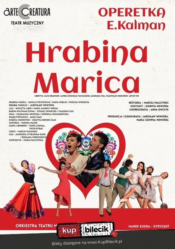 bilety: Ach, jedź do Varašdin! i Graj, Cyganie! usłyszymy podczas widowiskowego spektaklu "Hrabina Marica", wielkiego operetkowego sukcesu Emmericha Kálmána, twórcy "Księżniczki czardasza". "Hrabinę Maricę" przepełniają pełne pasji węgierskie rytmy czardasza i cygański, namiętny temperament. Na scenie wystąpią znakomici soliści międzynarodowych scen operowych z towarzyszeniem Orkiestry Teatru Muzycznego Arte Creatura pod dyrekcją utalentowanych dyrygentów. Daj się porwać namiętnym uczuciom głównych bohaterów, pełnej pasji i temperamentu muzyce, cudownym głosom i energetyzującym tańcom! Libretto opowiada historię pięknej i szalenie bogatej Hrabiny Maricy, która, nie mogąc opędzić się od adoratorów, publikuje w prasie informację o swoich zaręczynach z wymyślonym baronem Kolomanem Żupanem. Na nieszczęście, okazuje się, że taki baron faktycznie istnieje i przyjeżdża do posiadłości hrabiny na Węgrzech na własne zaręczyny. Do grona adoratorów Maricy dołącza też zubożały hrabia Tasillo, który jako zarządca zawiaduje jej majątkiem, by w ten sposób spłacić długi ojca i zabezpieczyć los siostry Lizy. Z kolei Żupan Koloman, by przejąć majątek po dziadku, może poślubić wyłącznie pannę bez posagu, całkiem "gołą". Warunek ten spełnia właśnie urocza Liza. Niedoszły małżonek zwraca więc Hrabinie Maricy słowo, tym bardziej, że widzi jej zainteresowanie Tasillem. Niestety Marica podejrzewa, że przystojny i szarmancki Tasillo też liczy na jej pieniądze. Nieoczekiwanie w majątku pojawia się bogata księżna - ciotka Tasilla. Co będzie dalej? Przyjdź na spektakl i zobacz! Hrabina Marica artyści: Jarosław Wewióra, Natalia Piechowiak, Ewelina Sobczyk, Paulina Gocałek, Adam Żaak i inniHrabina Marica to drugi, obok Księżniczki czardasza, wielki operetkowy sukces E.Kálmána. Operetkę przepełniają węgierskie rytmy czardasza, wiedeńskie walce, cygański temperament oraz gorące emocje głównych bohaterów. Znajdziemy w niej takie szlagiery, jak Graj, Cyganie!, Ach, jedź do Varasdin i słynny czardasz Maricy. Libretto opowiada historię pięknej i szalenie bogatej Hrabiny, która nie mogąc opędzić się od adoratorów, publikuje w prasie informację o swoich zaręczynach z wymyślonym baronem Kolomanem Żupanem. Na nieszczęście, okazuje się, że baron faktycznie istnieje i stawia się w posiadłości hrabiny na Węgrzech. Do grona adoratorów Maricy dołącza też zubożały hrabia Tasillo, który udając zarządcę, zawiaduje jej posiadłością, by w ten sposób spłacić długi swego ojca i zabezpieczyć los siostry Lizy. Z kolei Żupan Koloman, by przejąć spadek po dziadku, może poślubić wyłącznie pannę bez posagu. Warunek ten spełnia urocza Liza. Nieoczekiwanie w majątku pojawia się bogata księżna – ciotka Tasilla, która spłaciwszy długi rodzinne, przywraca mu należny status. Hrabia może teraz oświadczyć się Maricy, a baron Żupan pojechać z Lizą, rezygnując z jej posagu, do Varasdin. Operetka kończy się zatem tak, jak powinna kończyć się operetka - szczęśliwie! Bilety do nabycia na: KupBilecik.pl |